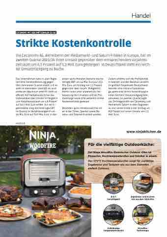 Die Ceconomy AG, Betreiberin der Mediamarkt- und Saturn-Filialen in Europa, hat im zweiten Quartal 2023/24 ihren Umsatz gegenüber dem entsprechenden Vorjahres- zeitraum um 6,5 Prozent auf 5,3 Mrd. Euro gesteigert. In Deutschland steht ein leich- ter Umsatzrückgang zu Buche.