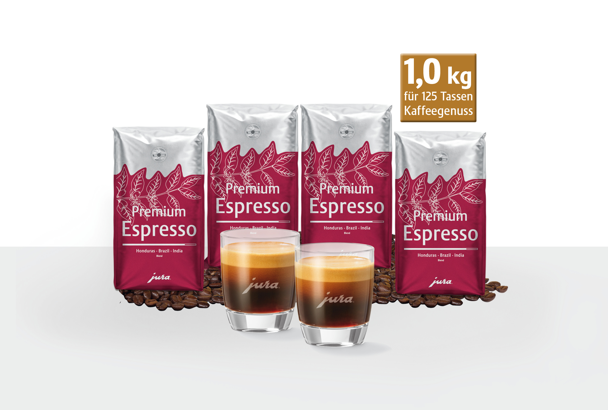 Bildtext Ein Kilogramm Premium Espresso und ein 2er-Set Espresso-Gläser sind Bestandteil des Zugabepakets.